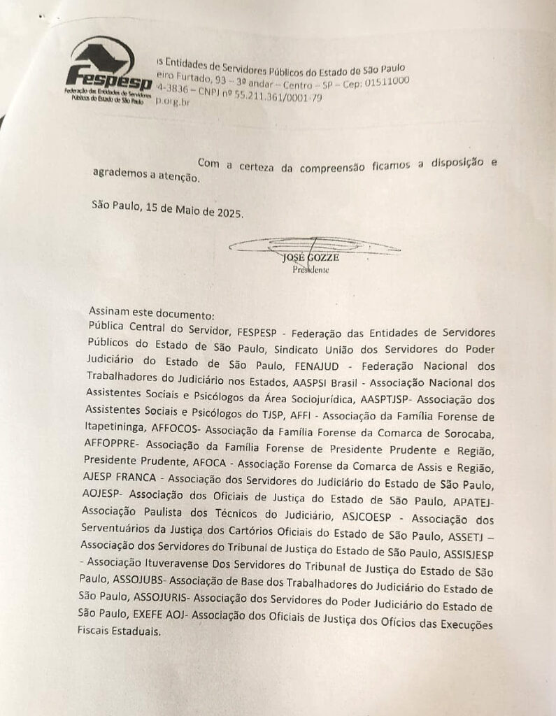Conforme o documento protocolado, as entidades acreditam que “esta mesa de negociação será fundamental para que a assembleia geral seja produtiva e eficiente, permitindo que todos os presentes estejam devidamente informados e preparados para as decisões a serem tomadas”.