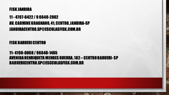 Para mais informações ligue (11) 3652-5400/(11) 5573-7000 ou entre no site www.fisk.com.br.