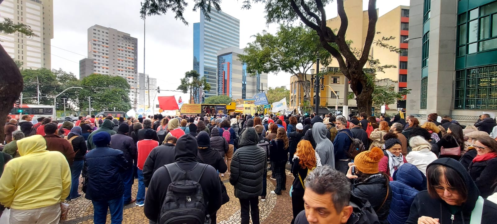 Mesmo sob o frio de 12 graus que se abateu sobre a capital nesta quarta-feira, 2 de julho, os servidores do Tribunal de Justiça de São Paulo (TJ-SP) compareceram à decisiva Assembleia Geral convocada pelas entidades de classe, entre elas a Apatej. Na ocasião, a categoria votou pelo encerramento da greve, iniciada em 14 de maio e suspensa em 28 de maio.