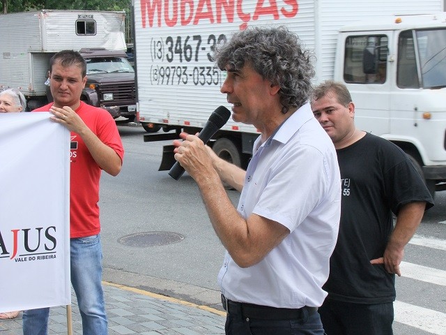 Nesta terça-feira, 31/1, a Apatej, representada pelo presidente Mário José Mariano (Marinho) e tesoureiro, Marcos Leite Penteado, participou de ato em São Vicente, na Baixada Santista, contra a Proposta de Emenda Constitucional (PEC) 287/2016, que trata da reforma da previdência, em tramitação na Câmara Federal, que retira direitos dos trabalhadores e dificulta a conquista da aposentadoria.
